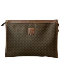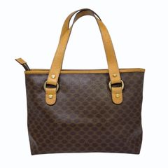CELINE セリーヌ ヴィンテージ マカダム トリオンフ ブラゾン 総柄 ハンドバッグ 肘掛け ミニ キャンバス レザー ブラウン系