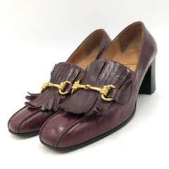 【ヴィンテージ】セリーヌ パンプス ローファー フリンジ ビット ボルドー 23.5cm 金具 革