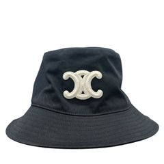 CELINE 極美品 セリーヌ TRIOMPHE BUCKET HAT トリオンフ バケット ハット 2AUE5968P ブラック ホワイト 帽子 ロゴ マカダム Aランク 中古 鑑定済 セリーヌハット